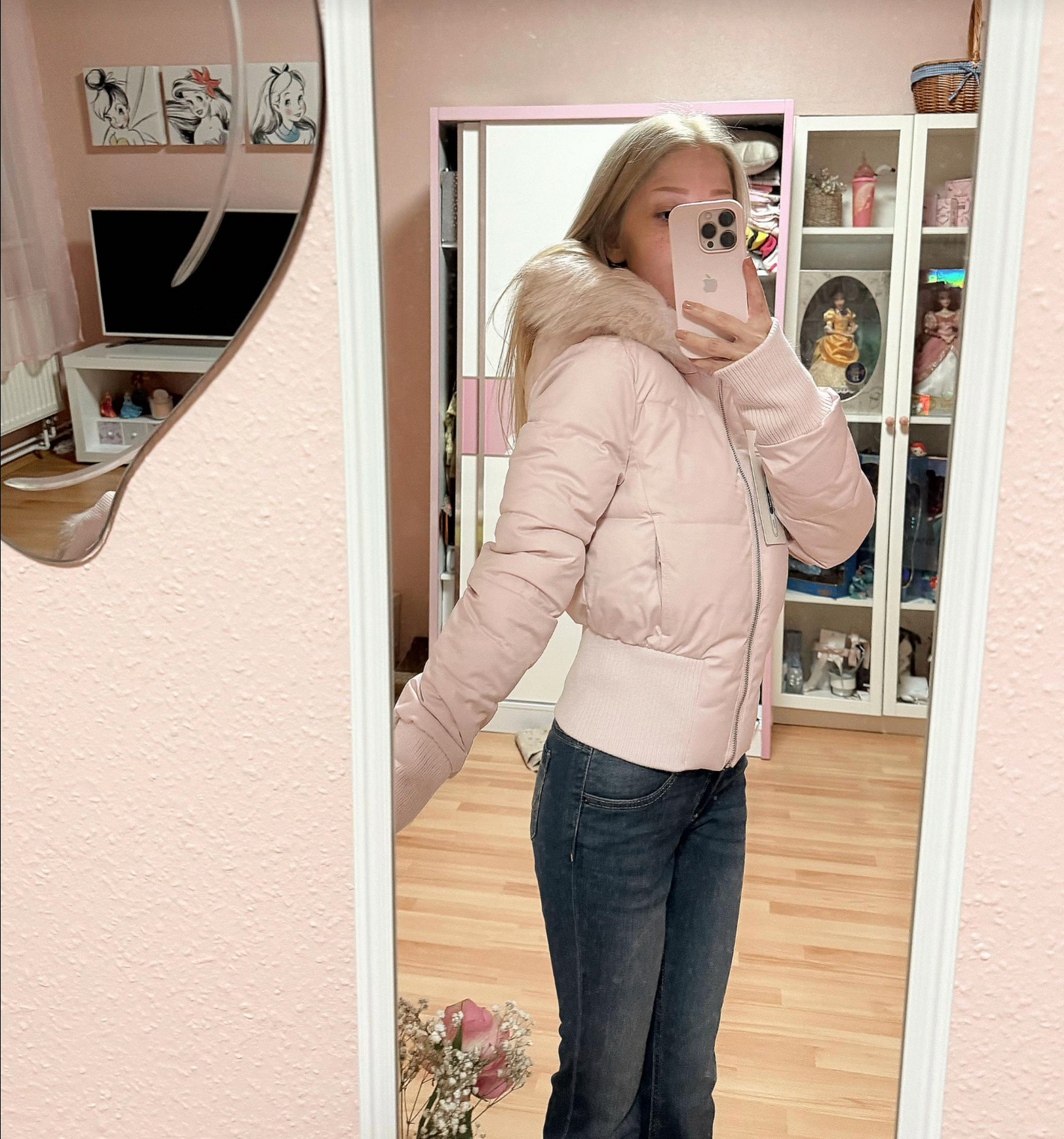 This jacket reminds me of those early 2000s winter looks — think glossy lips, low-rise jeans, and flip phones. It’s nostalgic but trendy again! Love the puffiness and how soft the inside is. Definitely my go-to for cold days.